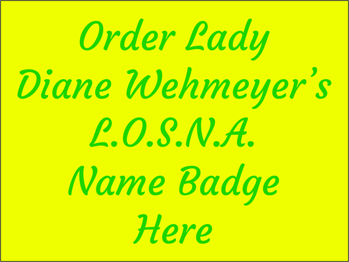 Lady Diane Wehmeyer - L.O.S.N.A. Class Name Badge: Custom name badge with Lady Diane Wehmeyer's confidential design. You must select whether or not you will be attending Grand Council.