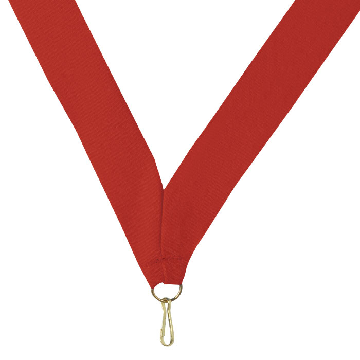 Award Neck Ribbon in Red; Standard 7/8" wide x 30" (15" folded); Made of fine grosgrain ribbon with ring at the bottom (no clip).