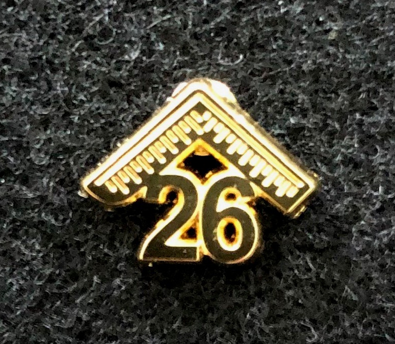 Small Masonic Master's Lapel Pin for 2026; Measures 1/2" wide; Cast in 3-D in Gold Plating; Post with military clutch back; Poly bag